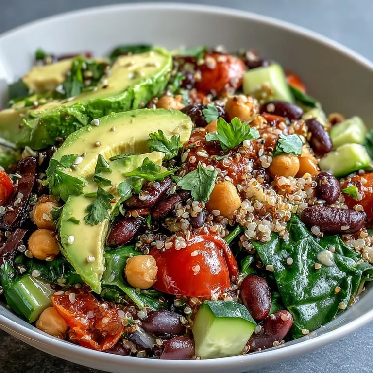 Save to Pinterest My friend Sarah texted me one Tuesday asking for a lunch idea that wouldn't make her feel like she'd eaten the same thing five days running. That's when I started playing around with this three-bean bowl, layering different textures and colors until it looked like something worth photographing. The beauty of it hit me instantly: no cooking required if you use canned beans, everything stays fresh and bright, and somehow it tastes better the next day than it does fresh. It became our go-to answer whenever someone wanted something filling but not heavy, something that felt like real food instead of diet food.